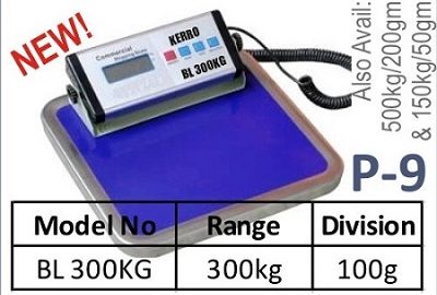 P-9(300KG/100G) October 16, 2016Digital Weighing Balance, Productsmanagerdhanika Description Model No. Range Division BL300kg 300kg 100g For more info. kindly contact us.